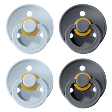 Die Farben Baby Blue und Iron sind nicht nur wunderschön anzusehen, sondern auch zeitlos und vielseitig. Sie passen perfekt zu jedem Outfit und verleihen deinem kleinen Liebling einen Hauch von Stil. Mit diesem 4er-Pack hast du immer einen sauberen Schnuller zur Hand, egal ob zu Hause oder unterwegs.