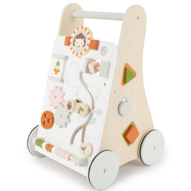 Dieser Lauflernwagen unterstützt die ersten Schritte der Kleinen und sorgt für spaßige Pausen, denn mit 10 verschiedenen Aktivitätsspielen kommt keine Langeweile auf. Die aus der Bieco Design Linie bekannten niedlichen Gesichter von Igel & Reh sind auch wieder mit dabei. Die rutschfeste Gummibereifung sorgt für zusätzlichen Halt beim Erkunden und Entdecken und schützt gleichzeitig den Fußboden. Ein toller Begleiter, der durch sein modernes Design auch viele Eltern optisch überzeugt. Produktdetails: Maße (Länge x Breite x Höhe): 37 x 35 x 51 cm Material: Holz Pflegehinweis: Mit milder Seife feucht abwischen Hier kommt absolut keine Langweile auf. Unterstützt nicht nur bei den klassischen ersten Schritten sondern sorgt auch für spaßige Pausen 10 verschiedene Aktivitätsspiele sorgen für beste Unterhaltung Rutschfeste Gummibereifung bietet zusätzlichen Halt beim Erkunden und Entdecken und schützt den Fußboden Alter: ab 10 Monaten