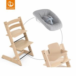 STOKKE® Mega Tripp Trapp® Set Hochstuhl Buche Warm Red inkl. Newborn Set™ Grey und Baby Set Warm Red