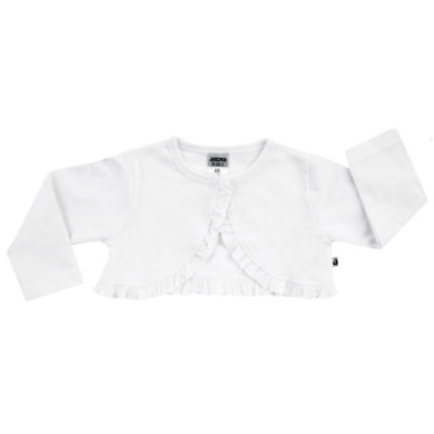 Schöner Bolero mit Rüschen. Der Bolero ist super geeignet für festliche Anlässe. Damit ist deine Kleine immer super gekleidet. Produktdetails: Material: 100% Baumwolle Waschbar bis 30 °C