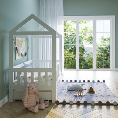 Das Kids Collective Hausbett ist aus hochwertigem Kiefernholz gefertigt und in einem zeitlosen Weiß lackiert. Die robuste Konstruktion sorgt für Stabilität und Langlebigkeit, sodass dein Kind viele Jahre Freude daran haben wird. Der integrierte Rausfallschutz gibt dir als Elternteil die beruhigende Gewissheit, dass dein kleiner Schatz sicher und geborgen schläft. So kannst du selbst entspannt schlummern, während dein Kind von aufregenden Abenteuern träumt.