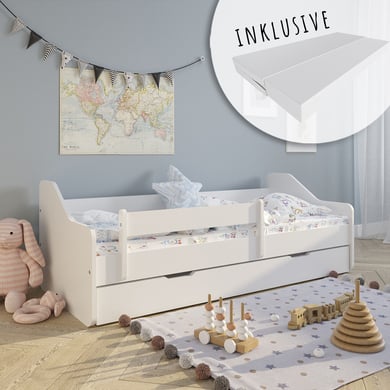 Dieses liebevoll gestaltete Kinderbett bietet alles, was du für einen erholsamen Schlaf deines Kindes benötigst: ein stabiles Bettgestell, eine komfortable Matratze, einen praktischen Rausfallschutz, einen soliden Lattenrost und eine geräumige Schublade für zusätzlichen Stauraum. So schaffst du nicht nur einen gemütlichen Schlafplatz, sondern auch Ordnung im Kinderzimmer.