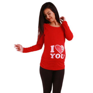 M-M-C Umstandslangarmshirt „I Love You“ mit Motiv Rot – Liebevoll durch die Schwangerschaft