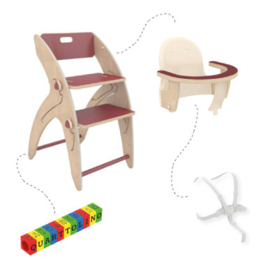 Der QuarttoLino® Hochstuhl Mini Rot überzeugt durch seine durchdachten Details und seine Vielseitigkeit: