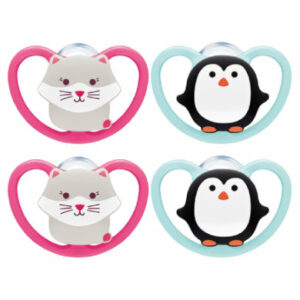 NUK Schnuller Space Gr- 3, 18 – 36 Monate Silikon Katze/Pinguin 4 Stück