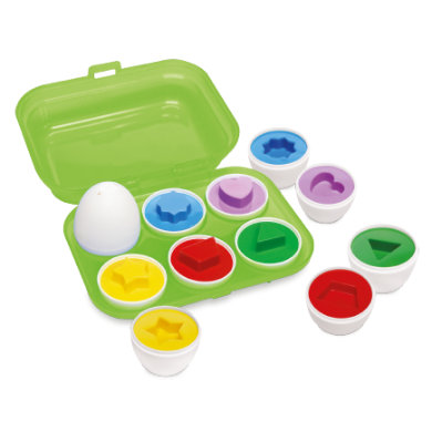 Mit ABC spielerisch die Welt entdecken! ABC weckt mit altersgerechten Produkten die Neugierde von Babys und Kleinkindern von 0-36 Monaten und unterstützt dabei die Entwicklung in den ersten Lebensjahren. Spielerisch werden erste Lernziele erreicht, Formen und Strukturen entdeckt sowie Koordinationsmuster geschult. Mit ABC Eier-Formensortierer können die kleinsten motorische Fähigkeiten und die Wahrnehmung schulen. Die sechs Eier lassen sich öffnen und zeigen verschiedene Formen und Farben. Schaffst du es, die Paare richtig zu verbinden? Produktdetails: Maße (Höhe): 7 cm Inhalt: 6 Eier, Eierbox Alter: Ab 12 Monaten