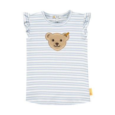 Exklusive Kindermode von Steiff! Für Kinder ist nur das Beste gut genug – auch in der Kindermode findet sich die Steiff-Philosophie wieder. Die anspruchsvolle Outfit-Kollektion mit klassischem Design und schmeichelnden Farbstellungen. Im klassischen Streifenlook gestylt, genießen trendbewusste Mädchen die schönsten Ausflüge im Sonnenschein. Weicher Jersey bietet ein herrliches Tragegefühl. Die lockere Passform sorgt für bequemen Sitz und Bewegungsfreiheit beim Spielen, Herumtollen und Chillen. Flügelärmelchen verleihen eine niedliche Silhouette und passen auch zu besonderen Anlässen. Hellblaue Streifen werden mit Shorts, Rock oder einer lässigen Sweatpants kombiniert. Für alle Fälle wird deine Kleine unterwegs von einem flauschigen Steiff Teddybärmotiv auf der Shirtfront begleitet. Ein Lieblingsstück! Produktdetails: Primärfarbe: blau Farbmuster: gestreift Material- und Pflegehinweise: Material: 95 % Baumwolle, 5 % Elasthan 40° C Buntwäsche Nicht bleichen Nicht im Wäschetrockner trocknen Nicht heiß bügeln