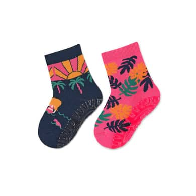 Die rutschfesten Noppen an der Sohle geben deinem Kind den nötigen Halt auf glatten Böden wie Fliesen, Parkett oder Laminat. So werden Ausrutscher vermieden und das Selbstvertrauen deines kleinen Lieblings gestärkt. Die Socken sind nicht nur funktional, sondern auch optisch ein Hingucker. Das fröhliche Palmen- und Blätter-Design in Marine bringt einen Hauch von Sommer ins Kinderzimmer und macht die Fliesen Flitzer zu einem echten Lieblingsstück.