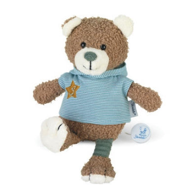 Sanft wiegt der weiche Bär Ben dein Kind in den Schlaf! Aus kuscheligem Plüsch, Nicki und Jersey. Der angebrachte Reißverschluss macht das das Herausnehmen des Spielwerks einfach und die Figur ist problemlos waschbar. Melodie: La Le Lu Produktdetails: Material: Plüsch: 100 % Polyester Nicki: 65 % Baumwolle, 33 % Polyester, 2 % Elasthan Jersey: 100 % Baumwolle Zum Anbinden Mit Spielwerk zum Aufziehen Melodie: La Le Lu Reinigung: Normalwaschgang bei 40 °C Alter: ab 0 Monaten Achtung Um die Hygiene dieses Produktes auch dauerhaft zu erhalten, sollte das Produkt nach Bedarf gereinigt werden. Dabei nicht ins Wasser tauchen, nur abwischen mit wenig Waschmittel. Chlorbleiche nicht möglich. Trocknen im Tumbler nicht möglich. Nicht bügeln. Bitte das Spielwerk vor dem Waschen entfernen! Das Spielwerk darf nicht in die Hände von Babys und Kleinkindern gelangen und muss nach dem Waschen wieder in die Spieluhr hinein gelegt werden! Bitte beachte, dass die Spielwerke nur einen Teil der Melodien wiedergeben können.