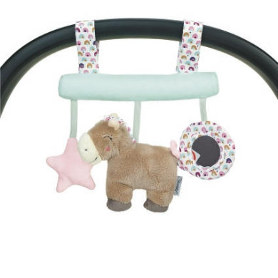 Spielzeug Pony Pauline zum Aufhängen aus Softvelour und Polycotton. Mit Rassel und Spiegel – das sorgt für gute Laune! Mit Klettbändern ganz einfach zu befestigen. Produktdetails: Material: Flausch/Softvelour: 100 % Polyester Baumwollstoff: 100 % Baumwolle Reinigung: Normalwaschgang bei 40 °C Mit Klettverschluss Mit Rassel und Spiegel Alter: ab 0 bis 36 Monaten Achtung Chlorbleiche nicht möglich. Trocknen im Tumbler nicht möglich, keine Reinigung möglich, nicht bügeln. Um mögliche Verletzungen durch Umschlingen mit der Schnur zu vermeiden, muss dieses Spielzeug entfernt werden, sobald das Kind beginnt, sich auf Händen und Knien in eine Krabbelposition aufzurichten. Zur Sicherheit des Kindes müssen beide Enden der Wagenkette immer fest befestigt sein.