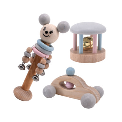 Die komplette Erstausstattung für stundenlanges Spielvergnügen! Die lachende Maus, das flotte Rolli-Auto und das klingelnde Pilz-Glöckchen sind die ideale Erstausstattung, um alle Sinne zu beschäftigen – so ist stundenlanger Spielspaß beim Schütteln, Schieben und Klingeln garantiert! Alle drei bestehen aus hochwertigen einheimischen Hölzern, werden vollständig in Deutschland gefertigt und erfüllen natürlich alle wichtigen Sicherheitsnormen – damit der Spielspaß ungetrübt bleibt! Produktdetails: Maße (Länge x Breite x Höhe): 9 x 9 x 1,3 cm Material: Holz Alter: ab 6 Monaten Achtung! Farbänderungen vorbehalten. Verpackt im farbigen Verkaufskarton.
